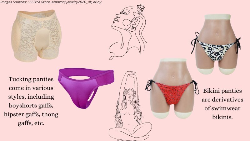 Tucking panties come in various styles, including boyshorts gaffs, hipster gaffs, thong gaffs, etc.