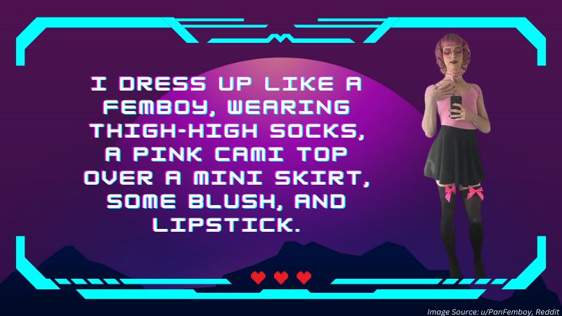 I dress up like a femboy, wearing thigh-high socks, a pink cami top over a mini skirt, some blush, and lipstick, chilling in my pink gaming chair, and I’m glued to Twitch watching various trans gamers do their thing.