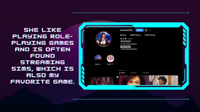 She like playing role-playing games and is often found streaming Sims, which is also my favorite game.