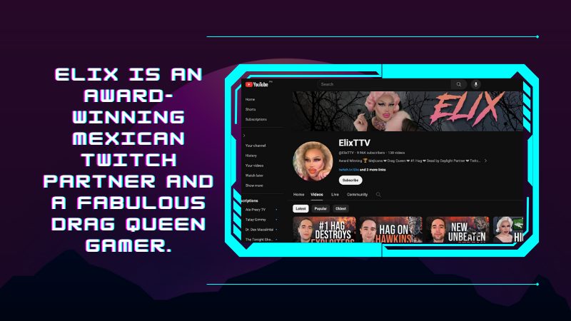 Elix is an award-winning Mexican Twitch Partner and a fabulous drag queen gamer.