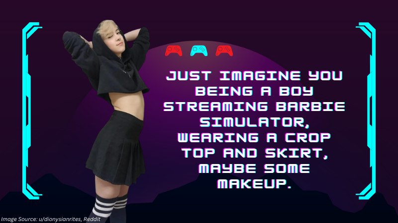 Just imagine you being a boy streaming Barbie Simulator, wearing a crop top and skirt, maybe some makeup. How cool is that, right?