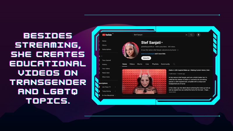 Stef Sanjati is an amazing transgender video game streamer and vlogger. Besides streaming, she creates educational videos on transgender and LGBTQ topics.