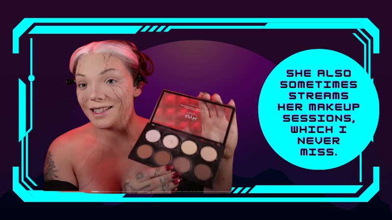 She also sometimes streams her makeup sessions, which I never miss.