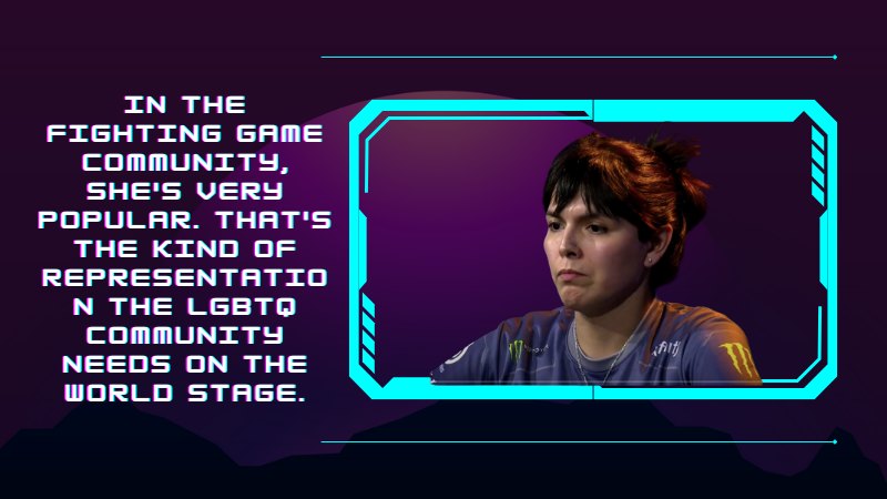 But in the fighting game community, she’s very popular. That’s the kind of representation the LGBTQ community needs on the world stage.