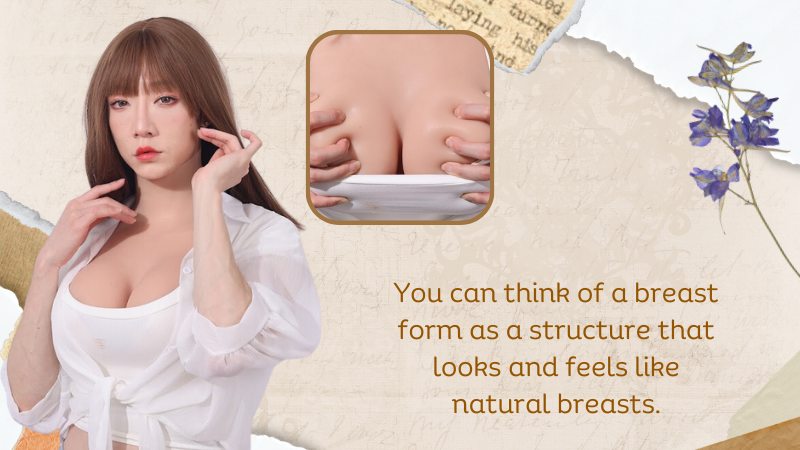 You can think of a breast form as a structure that looks and feels like natural breasts.