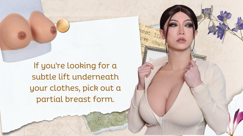 If you’re looking for a subtle lift underneath your clothes, pick out a partial breast form.