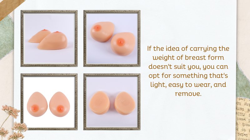 If the idea of carrying the weight of breast form doesn’t suit you, you can opt for something that’s light, easy to wear, and remove.