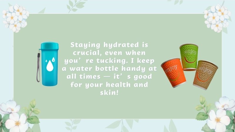 ● Hydration matters: Staying hydrated is crucial, even when you’re tucking. I keep a water bottle handy at all times — it’s good for your health and skin! It also prevents UTIs when tucked.