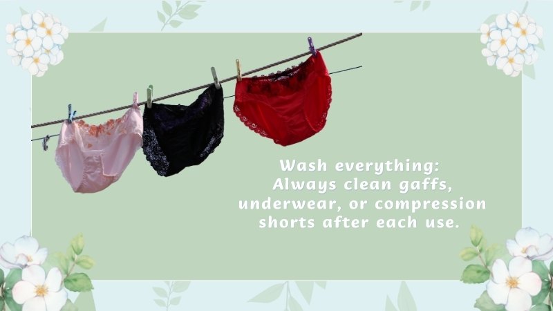 ● Wash everything: Always clean gaffs, underwear, or compression shorts after each use. Keep a couple of backups so you’re never without a clean option.