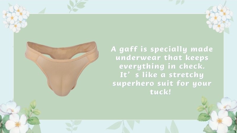 A gaff is specially made underwear that keeps everything in check. It’s like a stretchy superhero suit for your tuck! You just wear it like any other underwear, and it does all the heavy lifting for you.