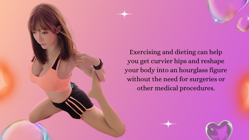 Exercising and dieting can help you get curvier hips and reshape your body into an hourglass figure without the need for surgeries or other medical procedures.