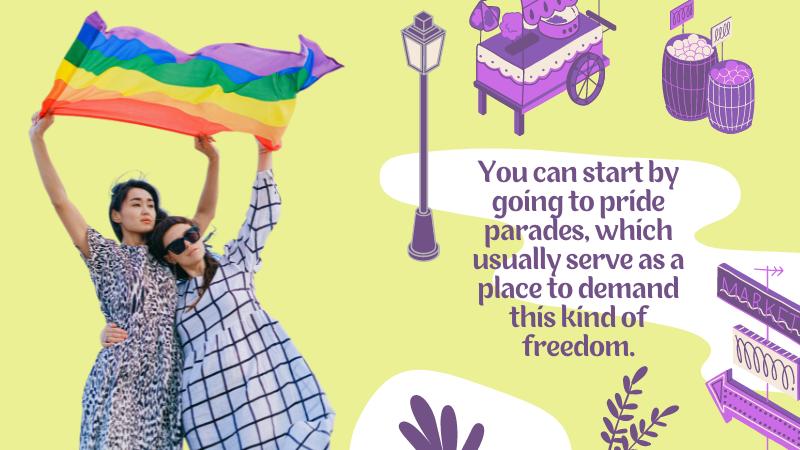 You can start by going to pride parades, which usually serve as a place to demand this kind of freedom.