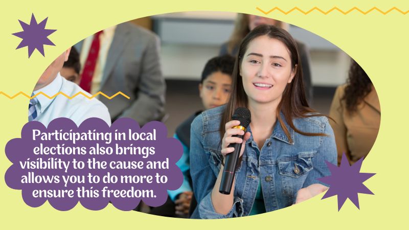 Participating in local elections also brings visibility to the cause and allows you to do more to ensure this freedom.