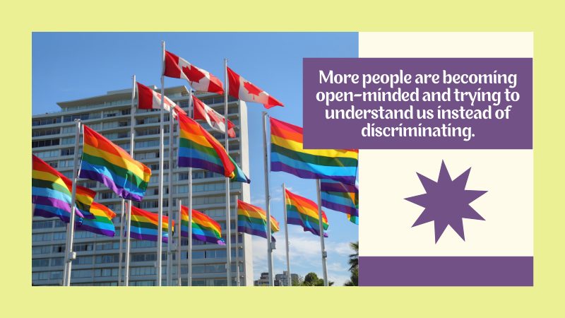 More people are becoming open-minded and trying to understand us instead of discriminating.