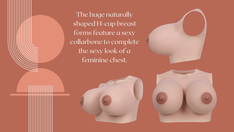 Be sure to consider this product. The huge, naturally shaped H-cup breast forms feature a sexy collarbone to complete the sexy look of a feminine chest.