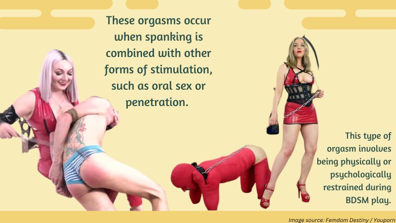 – Spanking Orgasms: These orgasms occur when spanking is combined with other forms of stimulation, such as oral sex or penetration. The submissive partner can experience immense pleasure and release from spanking alone through this combination.