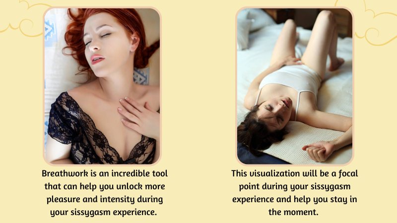 - Breathwork – is an incredible tool that can help you unlock more pleasure and intensity during your sissygasm experience. Taking slow, deep breaths can aid you to relax and surrender more fully to the moment.