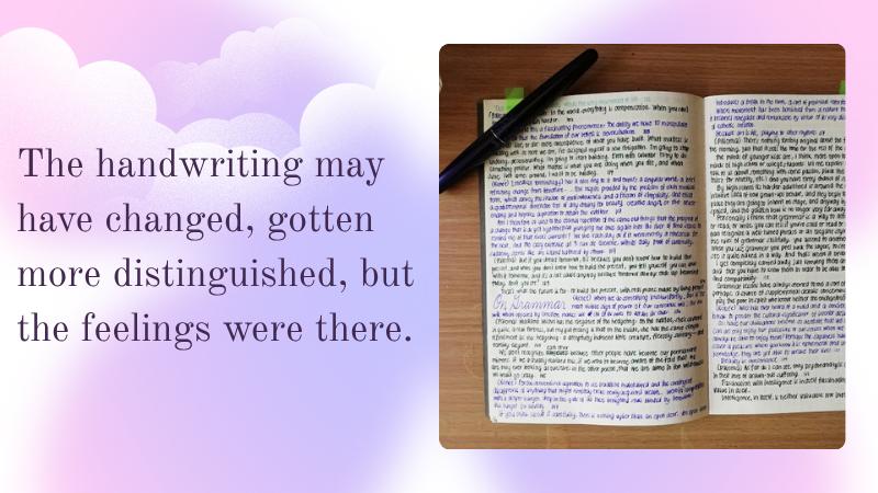 To the author of the ‘Blue Notebook Letter’, sorry, I’ve let you down. I’ve convinced myself that the fear was greater than any joy that I could ever feel. That your dreams and wants were childish. In a way, I suppose we always were childish. Perhaps it is time I stop being so.