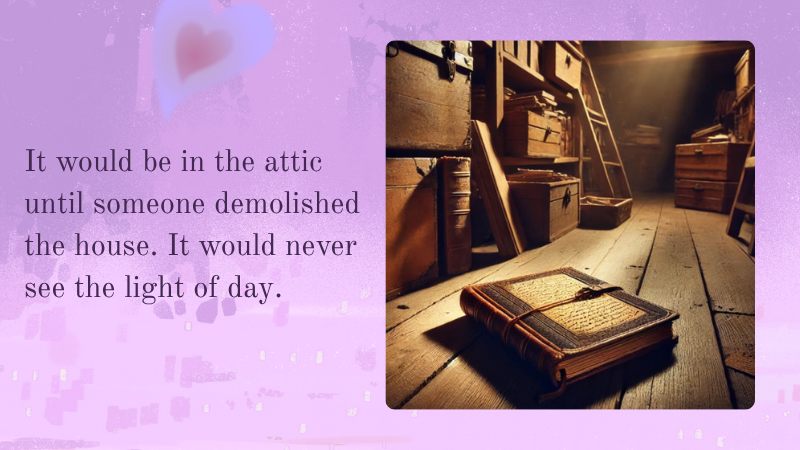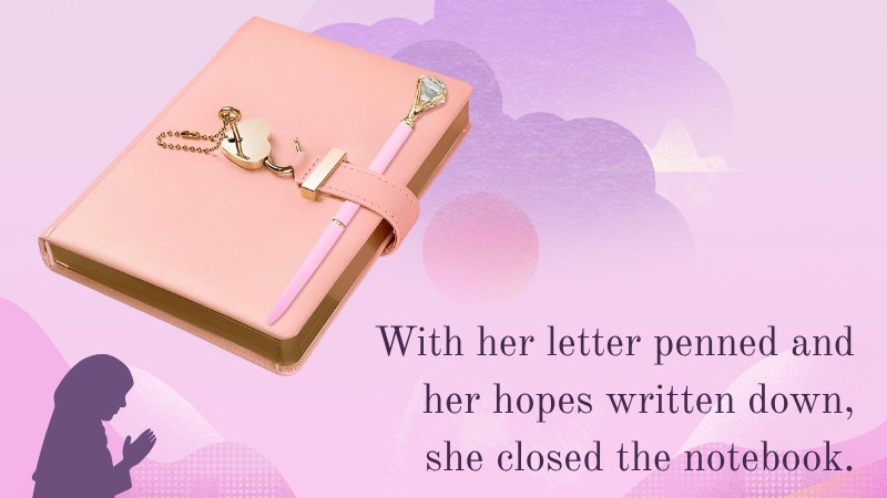 With her letter penned and her hopes written down, she closed the notebook. She shuffled it into a metal blue box and shoved it deep inside the attic where no one would ever find it.