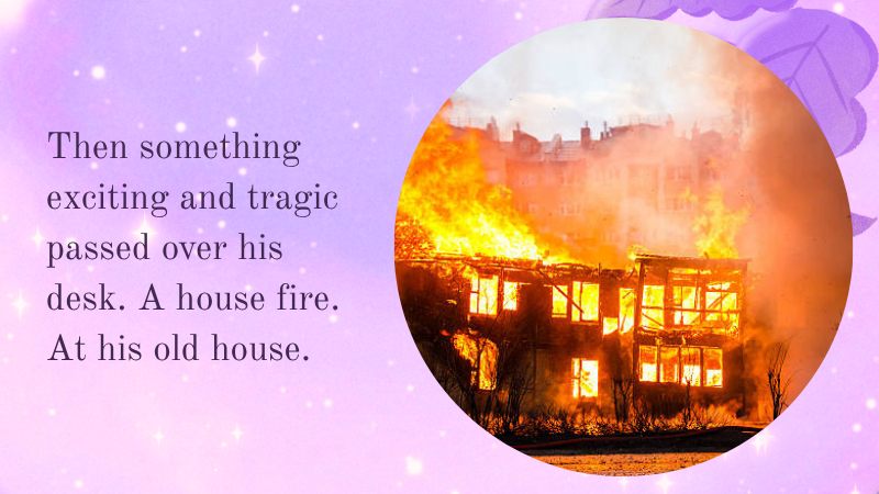 Then something exciting and tragic passed over his desk. A house fire. At his old house. His parents had moved to Florida a few years ago, selling his childhood home to some amateur realtor. Even with housing demands as they were, it never sold. Nobody ever moved to the small suburbs of Vision Town.