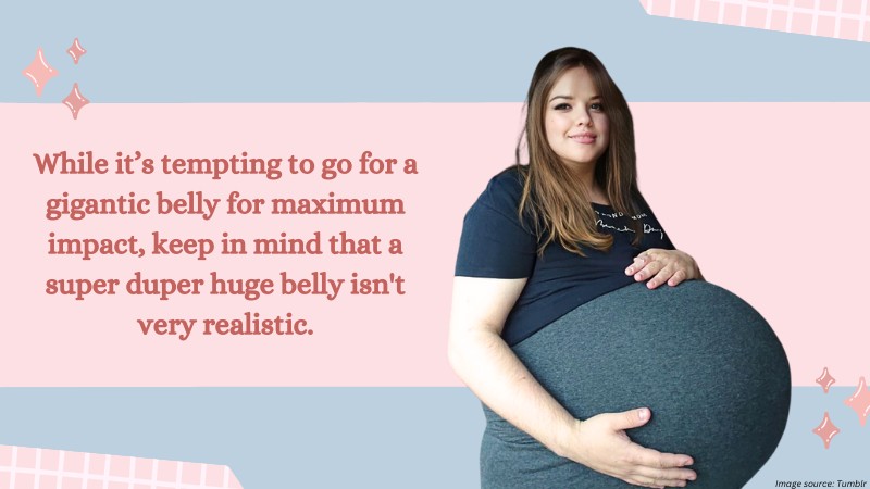 While it’s tempting to go for a gigantic belly for maximum impact, keep in mind that a super duper huge belly isn’t very realistic.