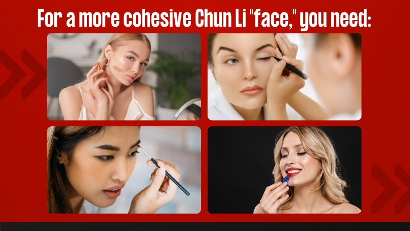 The 1991 Chun Li version didn’t show much makeup. So it’s better if you base your inspiration from newer Street Fighter installments or scroll through fan art. No one will really berate you for creating your own Chun Li makeup anyway!