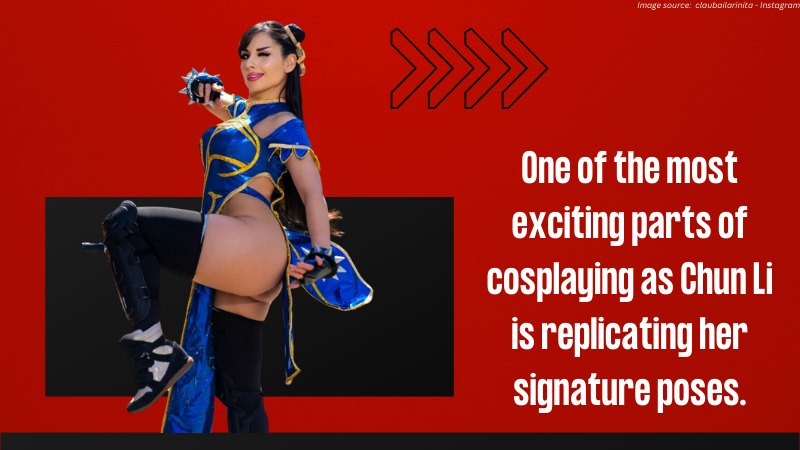 One of the most exciting parts of cosplaying as Chun Li is replicating her signature poses. You can’t do her helicopter kicks in gaming expos for safety and practical reasons. But you can copy her fighting stances, no sweat!