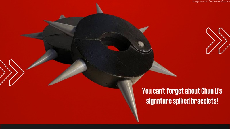 You can’t forget about Chun Li’s signature spiked bracelets! You can either find these ready-made or DIY them with foam and glue. If you plan to use them in a con, these bracelets should not be heavy!