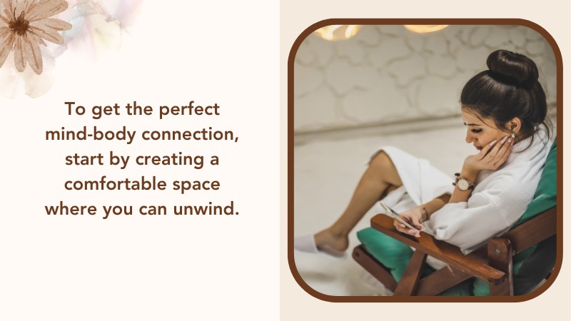 To get the perfect mind-body connection, start by creating a comfortable space where you can unwind.