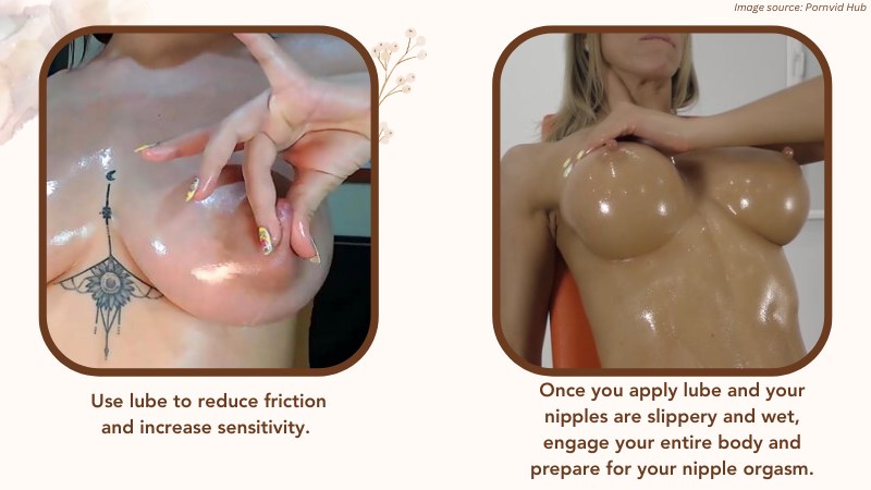 Once you apply lube and your nipples are slippery and wet, engage your entire body and prepare for your nipple orgasm.
