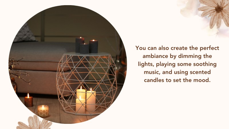 You can also create the perfect ambiance by dimming the lights, playing some soothing music, and using scented candles to set the mood.