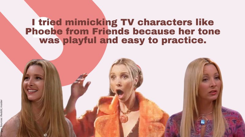 Later, I tried mimicking TV characters like Phoebe from Friends because her tone was playful and easy to practice. Choose someone whose style matches the kind of voice you’re aiming for.