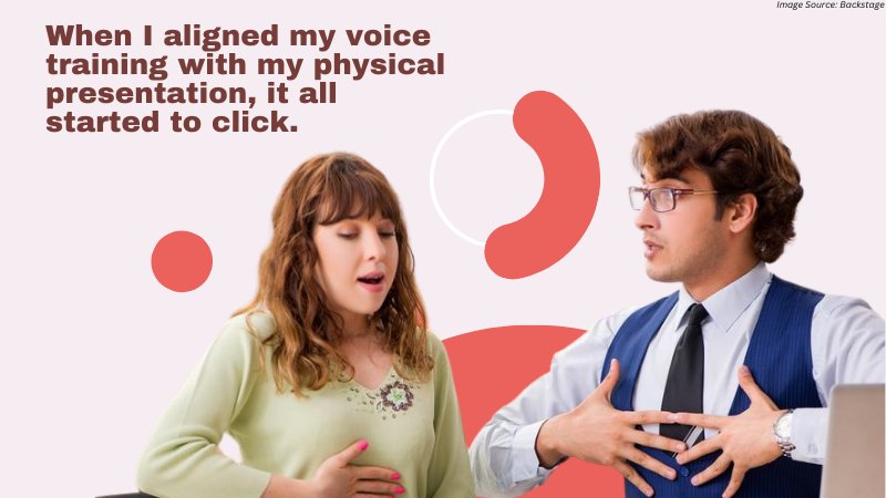 For example, using softer hand gestures, smiling more, and maintaining an open, relaxed posture made my voice feel more in sync with how I presented myself.