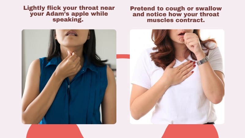 This method surprised me with how simple it was! Lightly flick your throat near your Adam’s apple while speaking.