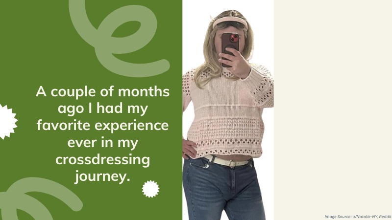 If you are in the crossdressing space and would like to be interviewed for my next “interview-style” blog post, you may reach out to me on Reddit: u/cd_catie93 or comment on this post with your information. I would also appreciate feedback on this blog style. Let me know your positive and negative thoughts!