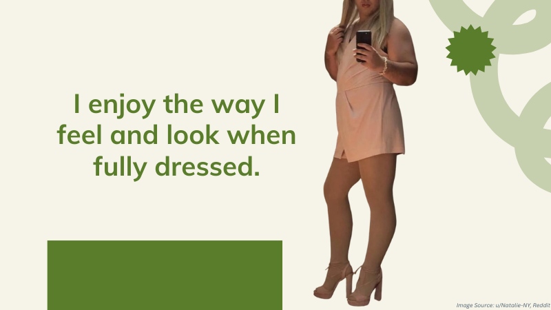 Natalie: I am interested in women’s clothes. Growing up, I would admire my sister’s and friends’ outfits and wonder what I would look like wearing them. Still, to this day, I have an eye for cute outfits and use other girls as inspiration for the style that I have developed. Once I started being able to try on full outfits, I never looked back, and I was hooked.