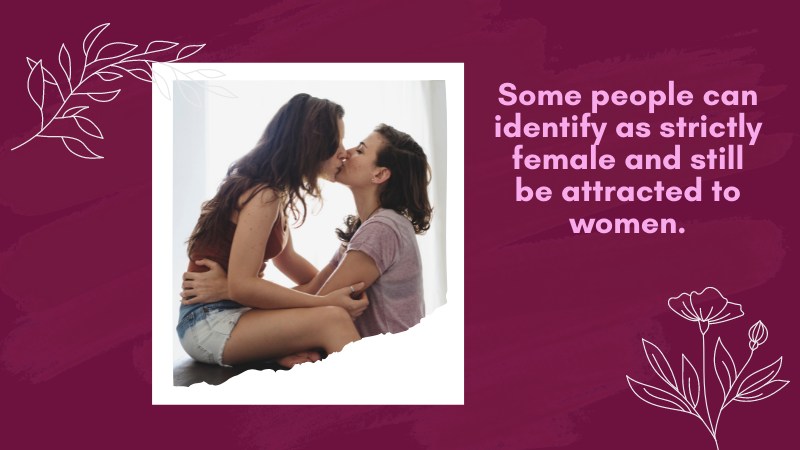 Some people can identify as strictly female and still be attracted to women, while others identify with both genders and are attracted to men and women.