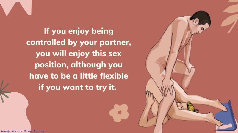 If you enjoy being controlled by your partner, you will enjoy this sex position, although you have to be a little flexible if you want to try it.