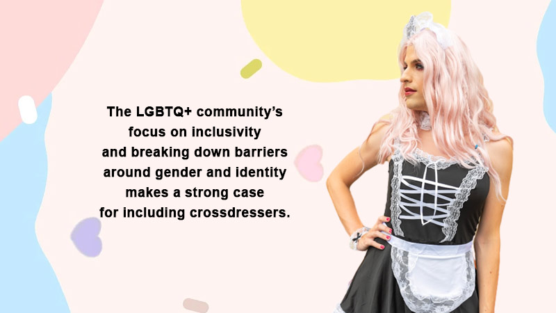 In my opinion, the LGBTQ+ community’s focus on inclusivity and breaking down barriers around gender and identity makes a strong case for including crossdressers.