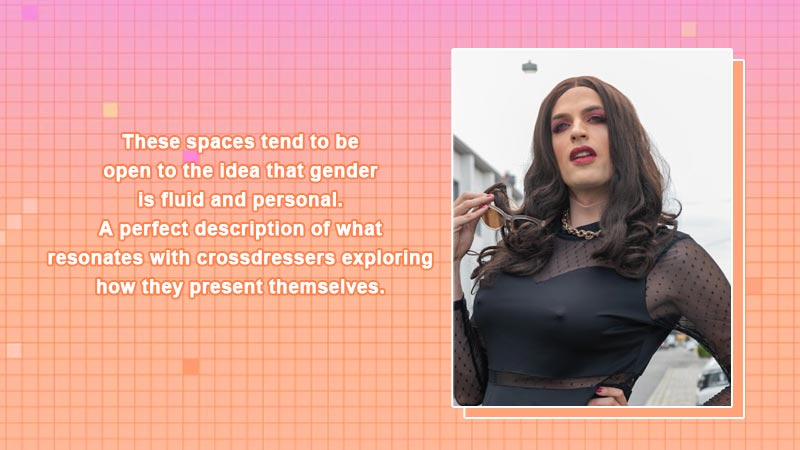 These spaces tend to be open to the idea that gender is fluid and personal. A perfect description of what resonates with crossdressers exploring how they present themselves.