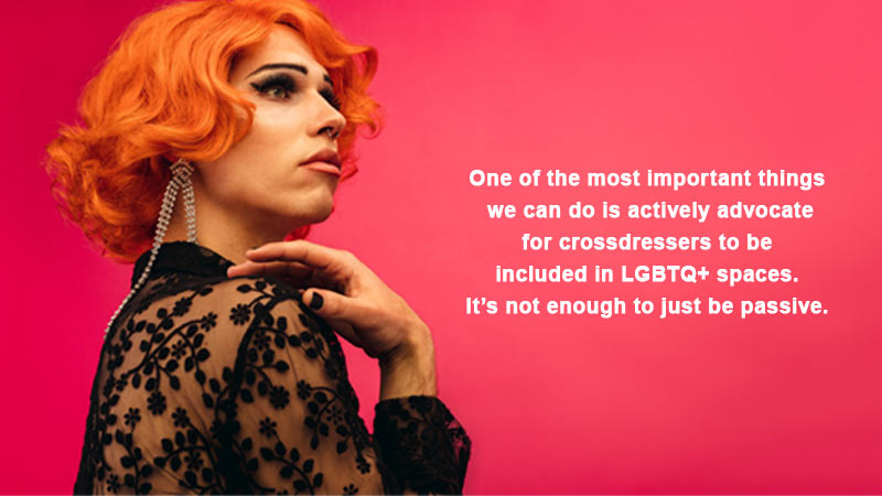 One of the most important things we can do is actively advocate for crossdressers to be included in LGBTQ+ spaces. It’s not enough to just be passive. We need to make sure crossdressers have a seat at the table.