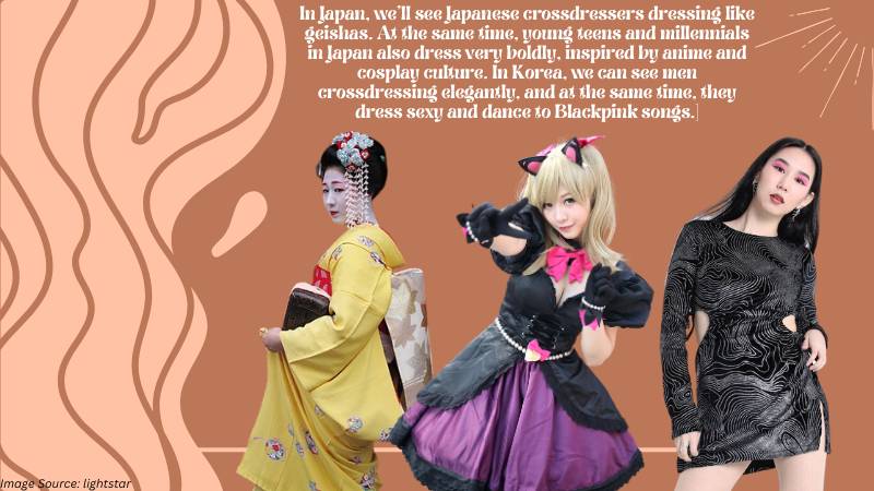 So, in Asia, we will see all types of crossdressing men. Some like wearing small skirts and crop tops, embracing femboy aesthetics at the same time;