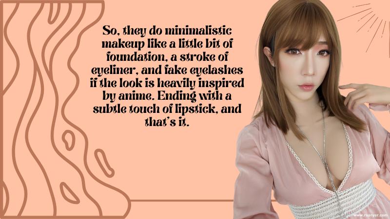 So, they do minimalistic makeup like a little bit of foundation, a stroke of eyeliner, and fake eyelashes if the look is heavily inspired by anime.