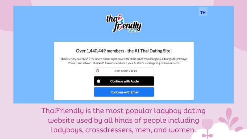 ThaiFriendly is the most popular ladyboy dating website used by all kinds of people including ladyboys, crossdressers, men, and women.