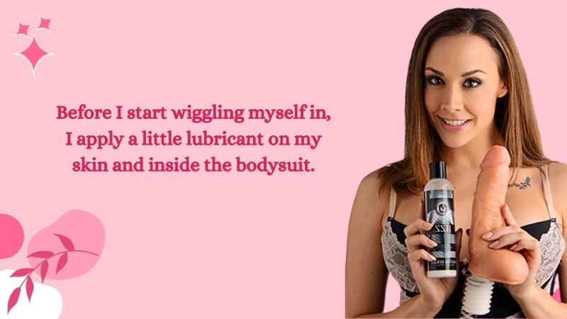 2. Before I start wiggling myself in, I apply a little lubricant on my skin and inside the bodysuit. This helps me slide into it more easily.