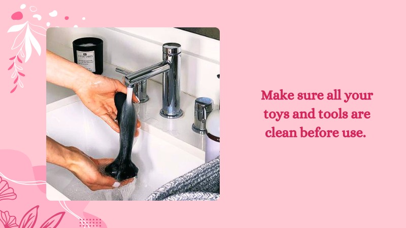 ● Make sure all your toys and tools are clean before use. If it has been a long while, double-clean just to be sure. Say no possible infections in every way!