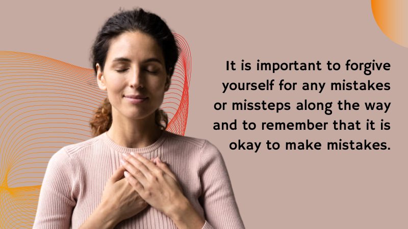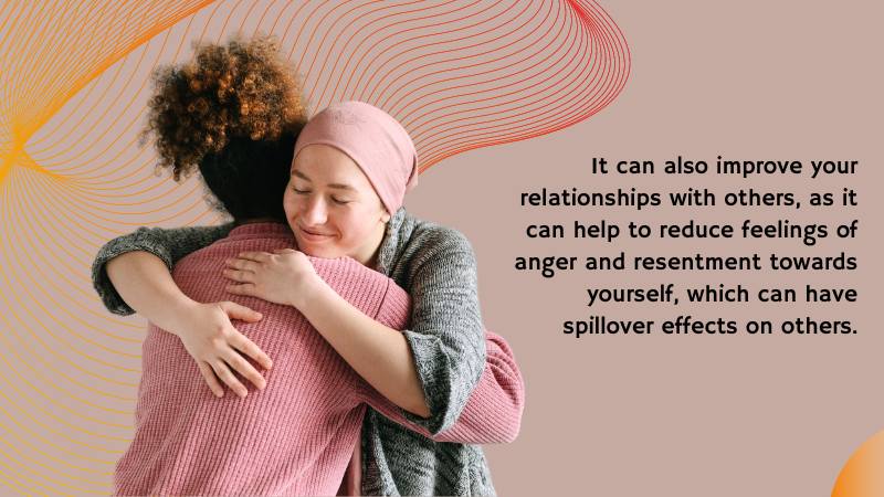 Also, it allows you to focus on the present and future rather than the past. It enables you to approach life with a positive, growth-oriented mindset. It can also improve your relationships with others, as it can help to reduce feelings of anger and resentment towards yourself, which can have spillover effects on others. By forgiving yourself, you can show compassion and understanding towards yourself, fostering greater emotional resilience and overall well-being.