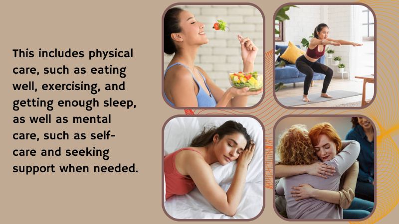 Taking care of yourself is essential for your overall well-being and happiness. This includes physical care, such as eating well, exercising, and getting enough sleep, as well as mental care, such as self-care and seeking support when needed. When you prioritize your physical, mental, and emotional well-being, you create a foundation of self-care that can help you feel better and more resilient when facing challenges.