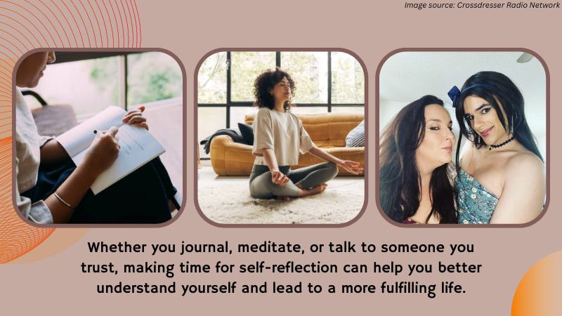 Taking the time to reflect on your feelings and experiences as a crossdresser can be a valuable and empowering process. Whether you journal, meditate, or talk to someone you trust, making time for self-reflection can help you better understand yourself and lead to a more fulfilling life.