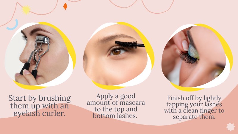 Finally, no look is complete without applying some mascara to enhance your lashes. To get long and voluminous lashes, start by brushing them up with an eyelash curler. Then, apply a good amount of mascara to the top and bottom lashes. Use a zig-zag motion when applying the mascara to help avoid clumps. Finish off by lightly tapping your lashes with a clean finger to separate them. With this simple, two-step process, you’ll be sure to get long and luscious lashes that will add the perfect finish.